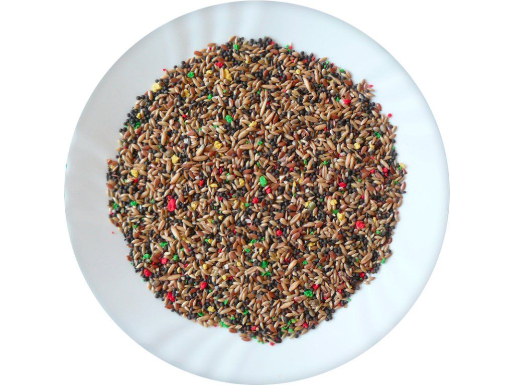 Zloženie: repka, lesknica, proso biele, proso červené, ľan, senegalské proso, semenec, niger, vitamínové perly, extrudované obilniny
